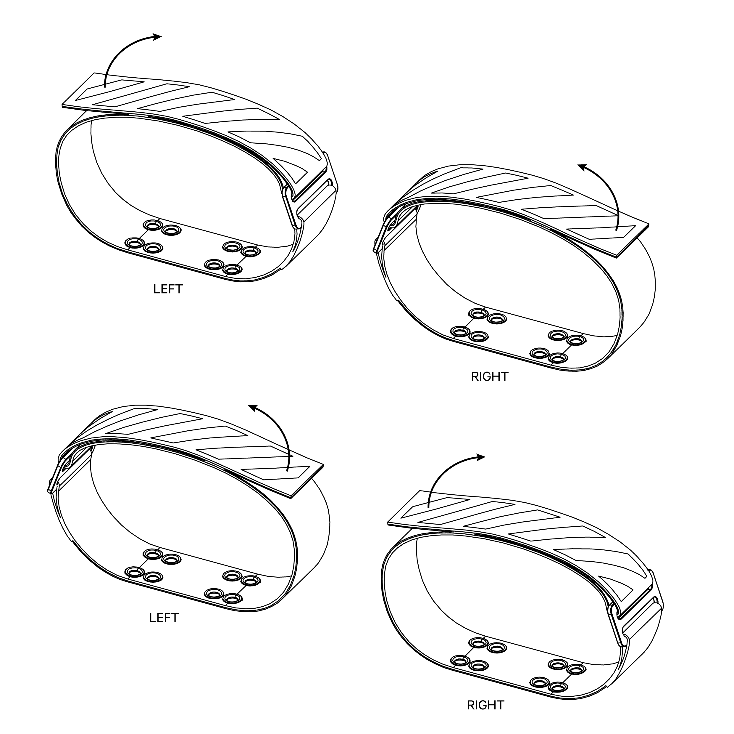 Dozens of hook-and-loop samples were tested to enhance the straps user experience. The selected hook-and-loop velcro system provides the best balance between adhesion, durability, easy removal and a low profile for reduced frontal area and to easily sit under shoe covers.